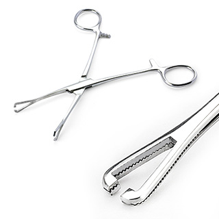 Скругленный треугольный зажим для пирсинга с прорезью и фиксатором.