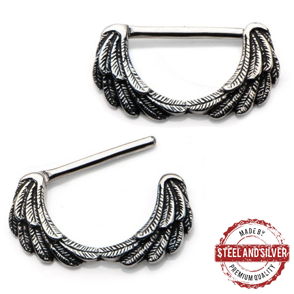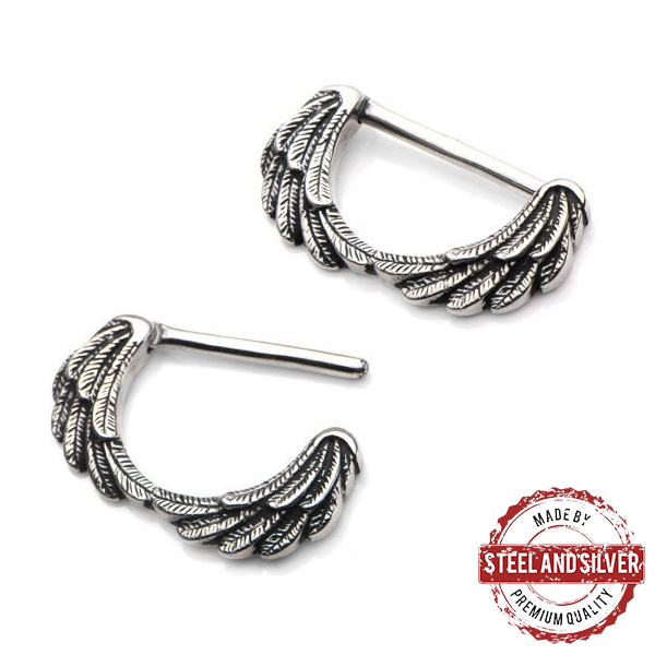 Кликер для груди в виде крыльев из хирургической стали 316L. Каждое пёрышко на крыльях тщательно детализированно.