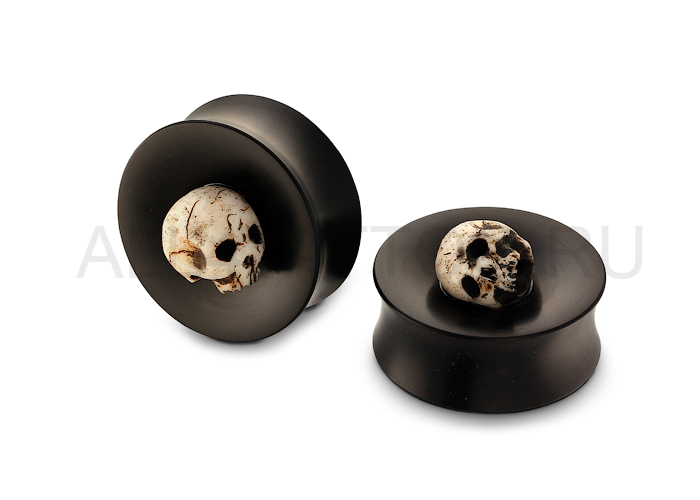 Плаги ручной работы от Carlo & Son из эбонита с инкрустацией черепов из полимера.