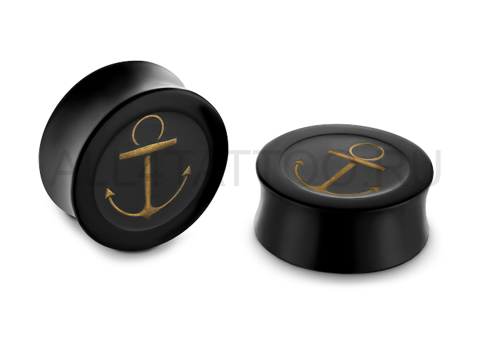 Плаги ручной работы от Carlo & Son из эбонита с латунным якорем, залитым прозрачным акрилом.