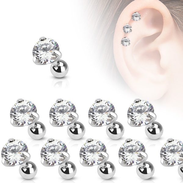 Микроштанга из хирургической стали 316L . Украшена круглым кристаллом. Представлен так же вариант с золотым PVD покрытием.