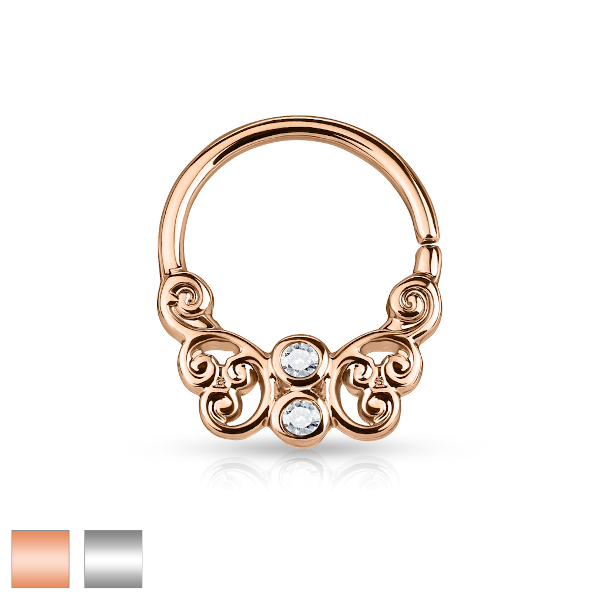 Раздвижное изящное кольцо из латуни с филигранным узором в форме бабочки, украшено стразами. Покрытие - родирование либо розовое золото.