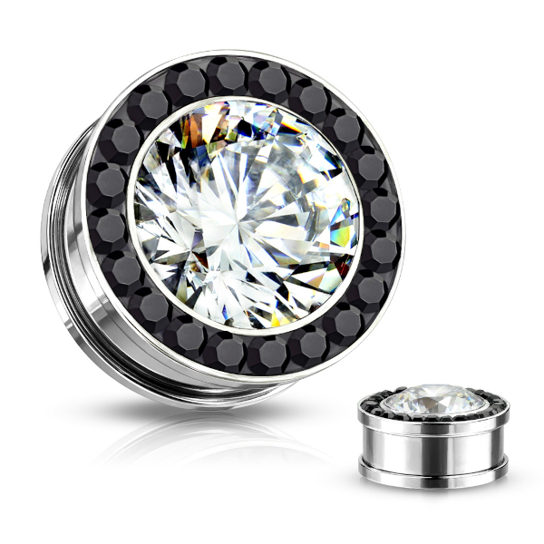Тоннели из хирургической стали 316L с украшением в виде крупного страза, окруженного кристаллами меньшего размера.