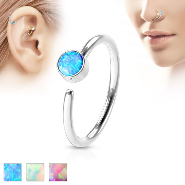 Раздвижное кольцо из хирургической стали 316L. Украшено  синтетическим опалом.