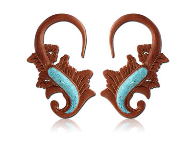 Фигурные спирали из древесины палисандра со вставкой из искусственной бирюзы.