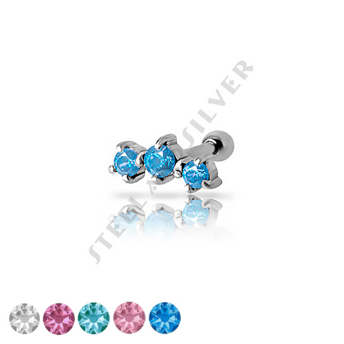 Микроштанга из хирургической стали 316L с кластером из трёх фианитов.
