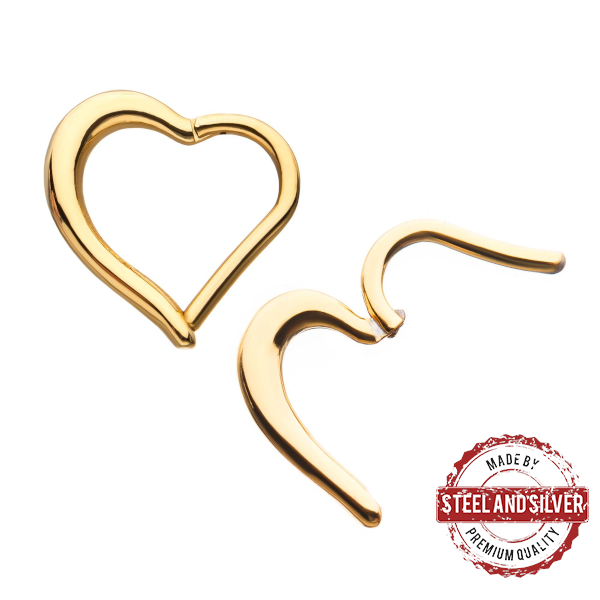 Кликер в виде изящного сердца из хирургической стали 316L с 24х каратным золотым PVD покрытием.