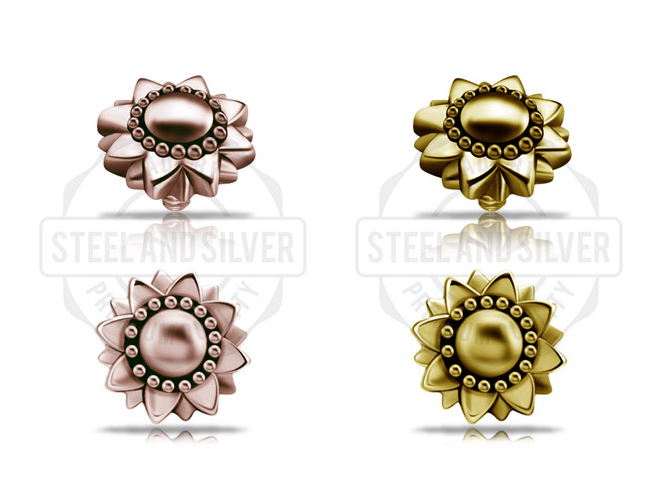 Накрутка из хирургической стали 316L с золотым PVD покрытием. Диаметр декоративной части - 6мм. Резьба накруток 0,8мм подходят к украшениям толщиной 1,2мм с внутренней резьбой.