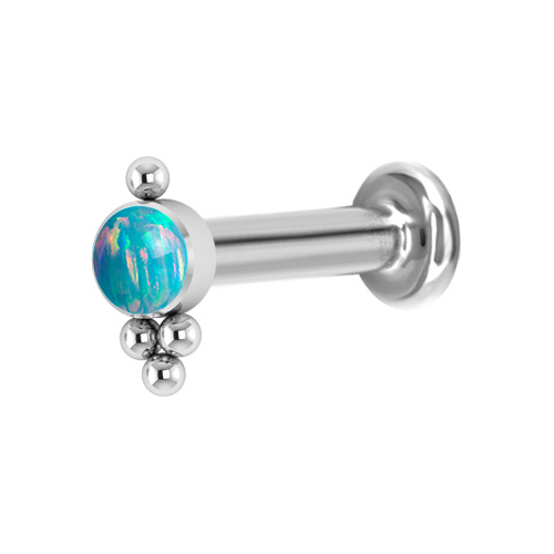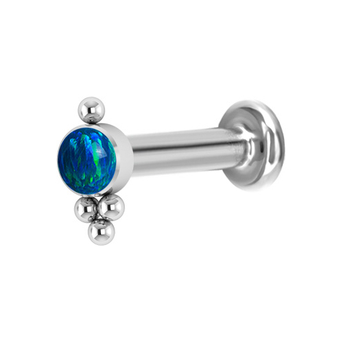 Лабрет из имплантационного титана 6Al-4V-Eli ASTM: F-136 с внутренней резьбой. Украшен искусственным опалом диаметром 3 мм.