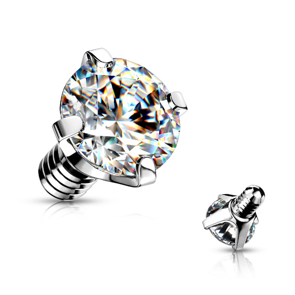 Накрутка из хирургической стали 316L, украшенная фианитом. Резьба накруток 1,2мм подходит к микродермалам и украшениям толщиной 1,6мм с внутренней резьбой. Резьба накрутки 0,9 мм - для украшений толщиной 1 и 1,2 мм.