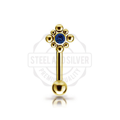 Микробанан с внутренней резьбой из имплантационного титана 6Al-4V-Eli ASTM: F-136 с PVD покрытием 24х каратного золота. Украшен кластером диаметром 5мм c Premium Zirconia.