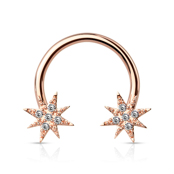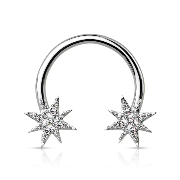 Циркуляр из хирургической стали 316L с декоративными частями из родированной латуни, украшенными кристаллами. Помимо классического стального цвета представлены также вариации с золотым PVD покрытием.