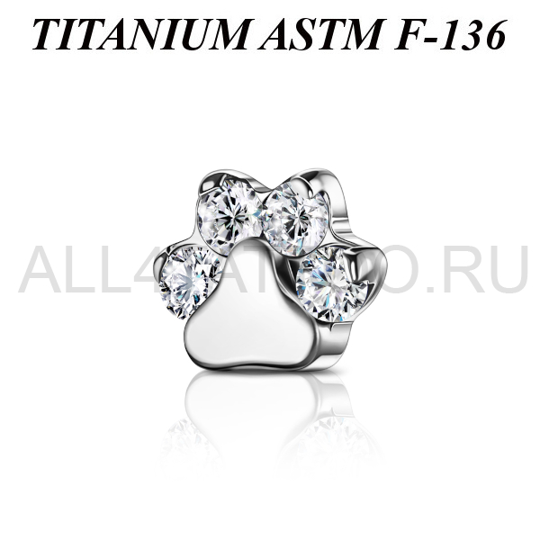 Накрутка из имплантационного титана 6Al-4V-Eli ASTM: F-136 для украшений с внутренней резьбой в форме лапки украшенной фианитами. Диаметр накрутки 5мм.