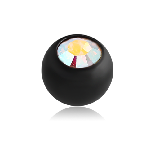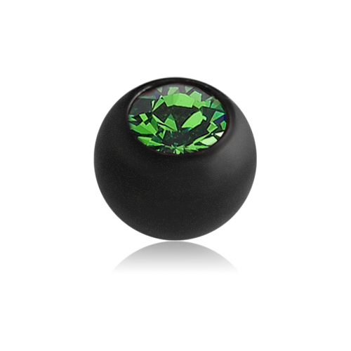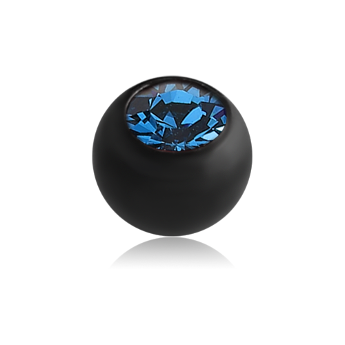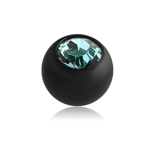 Шарик из имплантационного титана ASTM F-136 с чёрным  PVD покрытием украшен цветным стразом. Подходит для украшений с внешней резьбой.