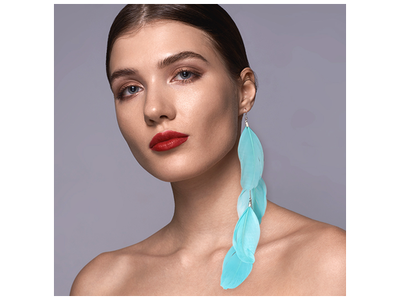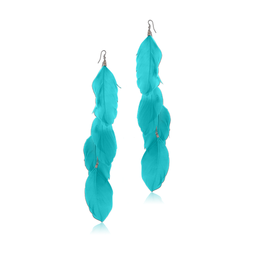 Серьги из хирургической стали 316L с подвеской, сочетающей окрашенные перья и цепочки. Общая длина декоративной части - 25cм.