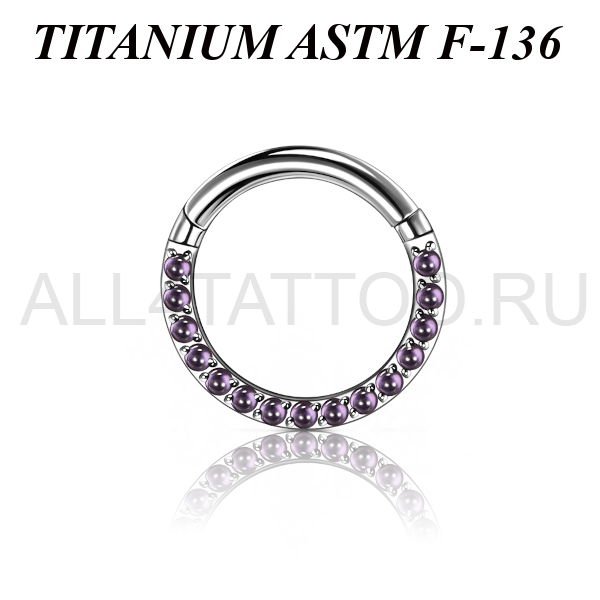 Кликер из имплантационного титана 6Al-4V-Eli ASTM: F-136. Украшен сетом кабошонов из аметиста.