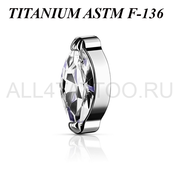Накрутка из имплантационного титана 6Al-4V-Eli ASTM: F-136. Украшена прозрачным фианитом огранки "маркиз" размером 2х4мм. Подходит для украшений с внутренней резьбой.