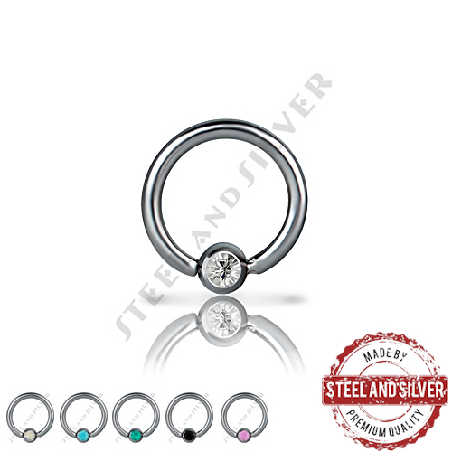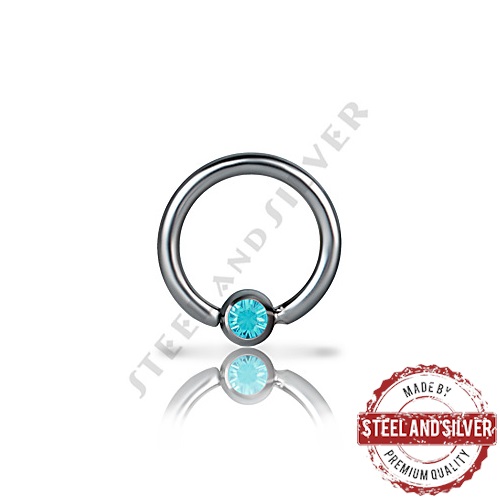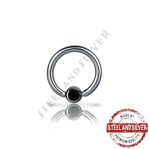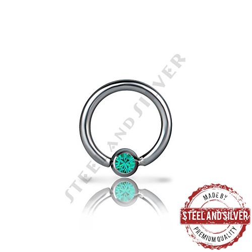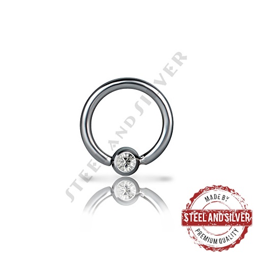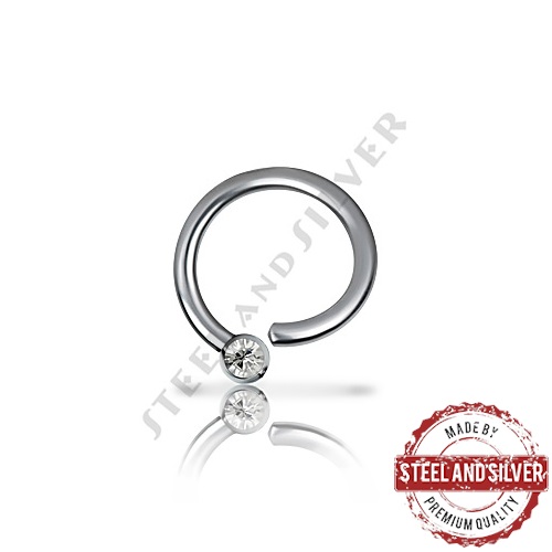 Тонкое раздвижное кольцо из хирургической стали 316L с фиксированным шариком, украшенным кристаллом Premium Crystals.