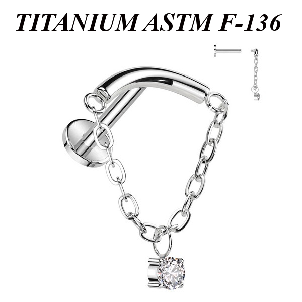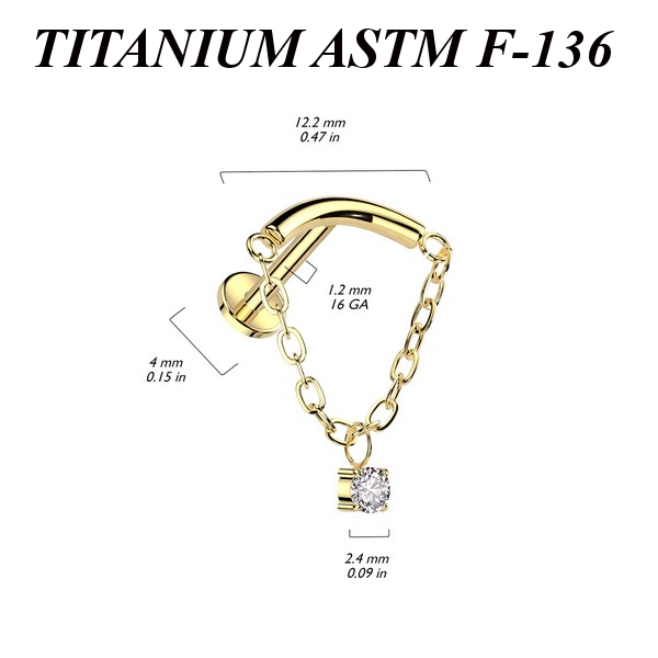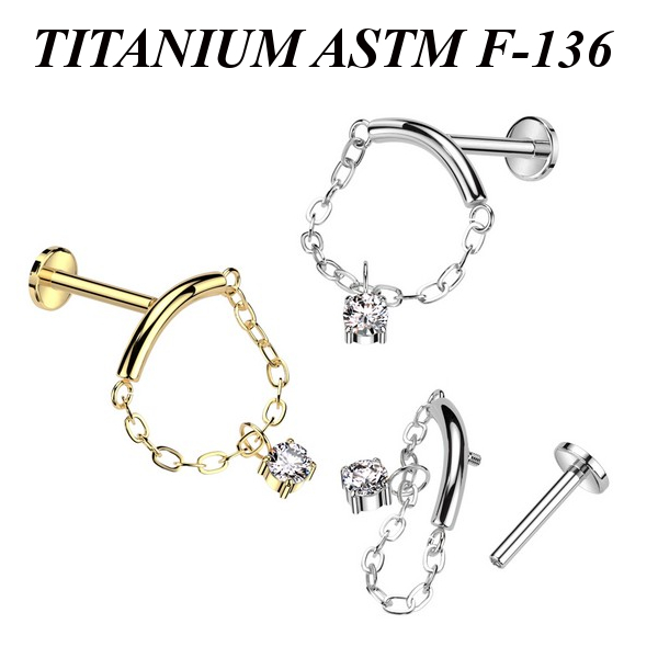 Лабрет с внутренней резьбой из имплантационного титана 6Al-4V-Eli ASTM: F-136. Представлен в двух вариантах: классический титановый и с золотым PVD покрытием.