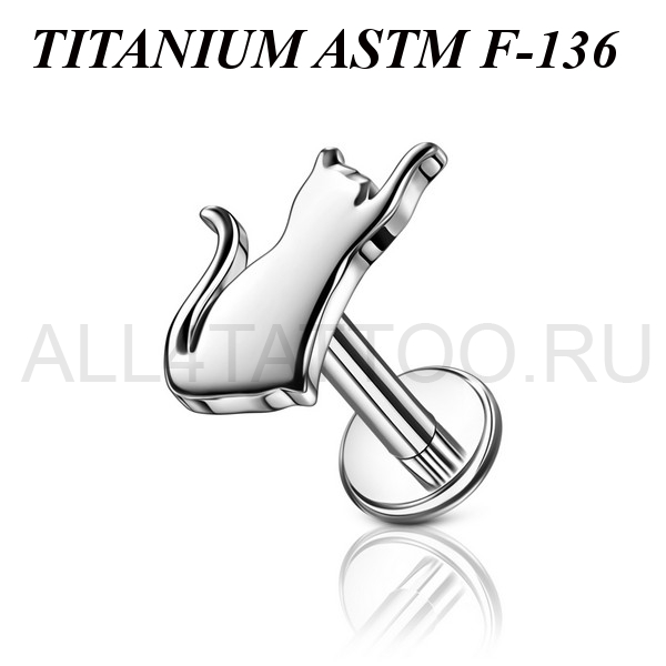 Лабрет с внутренней резьбой из имплантационного титана 6Al-4V-Eli ASTM: F-136. Украшен накруткой с фигуркой кота. Размер накрутки: 6,5х7мм