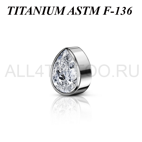 Накрутка из имплантационного титана 6Al-4V-Eli ASTM: F-136 в форме капли с прозрачным фианитом. Размер накрутки: 3,5х4,5мм. Подходит для украшений с внутренней резьбой.