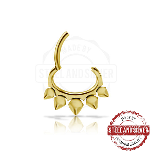 Овальный кликер из хирургической стали 316L. Представлен в двух вариантах: классический стальной и с золотым 24х каратным PVD покрытием.