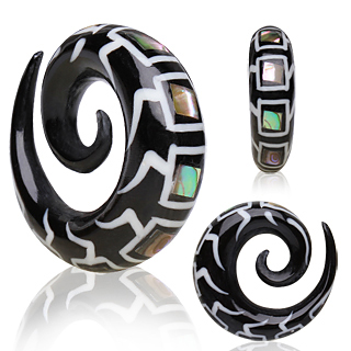 Роскошные спирали из рога буйвола инкрустированные костью и перламутром.